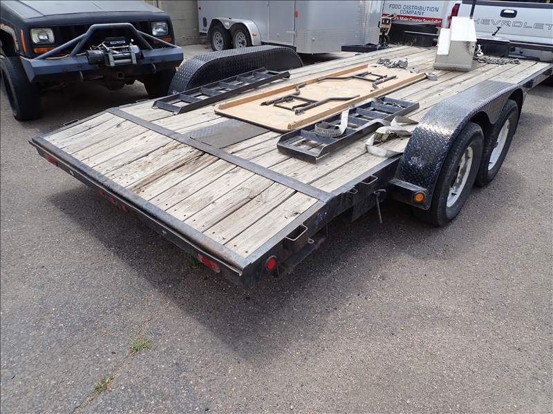 83"X16' T/A FLATBED CAR TRAILER, 9,000 LB WINCH, RAMPS