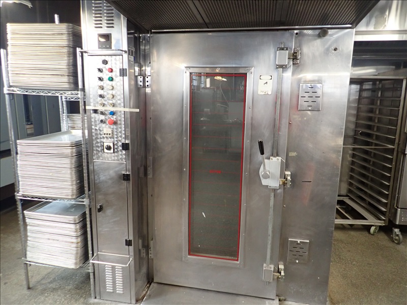 36" SINGLE RACK ROTARY RACK OVEN, NATURAL GAS, EXHAUST HOOD, CONTROLS, STEAM