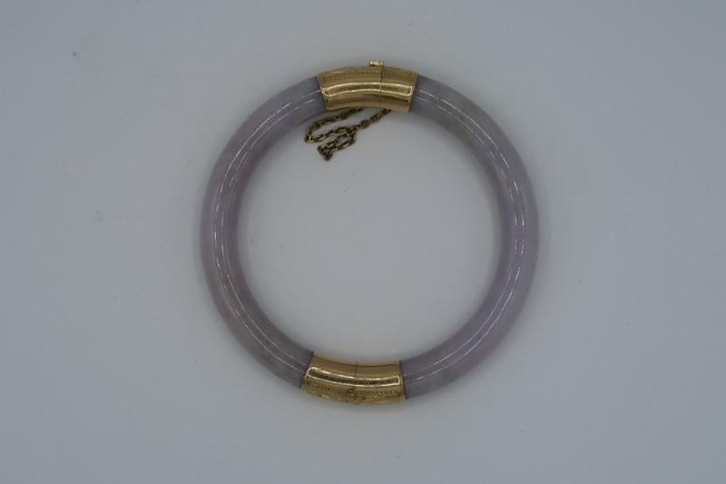 PURPLE JADE LIKE AND YELLOW METAL BANGLE