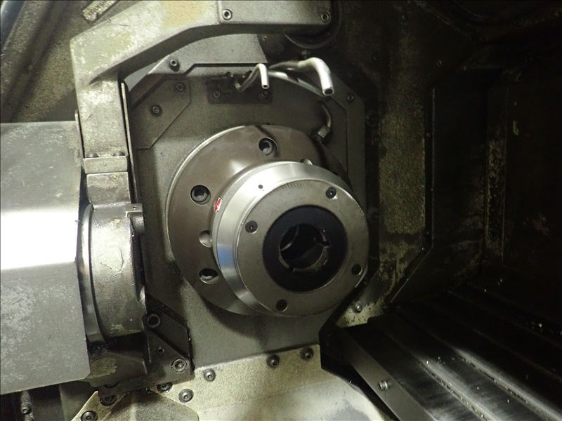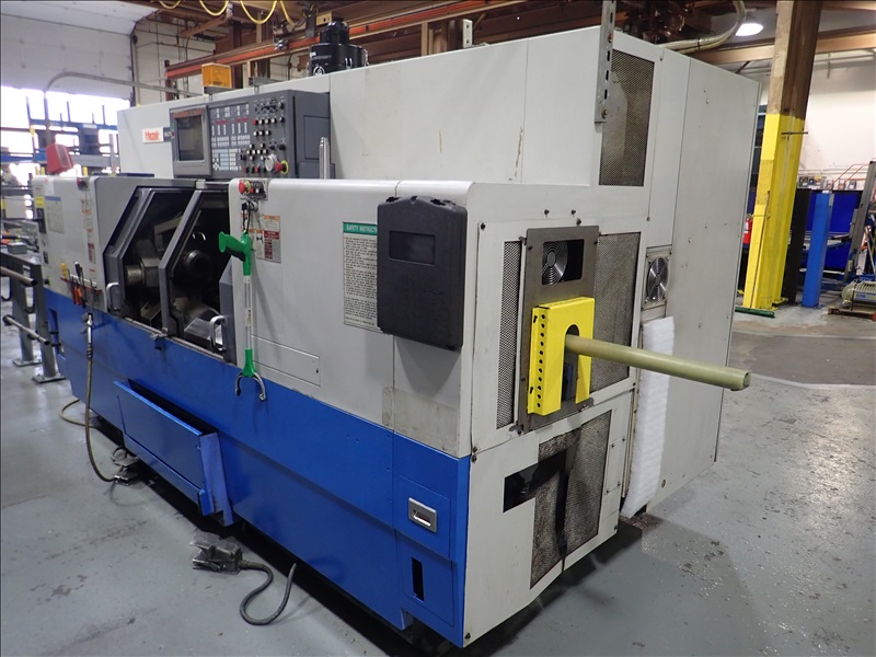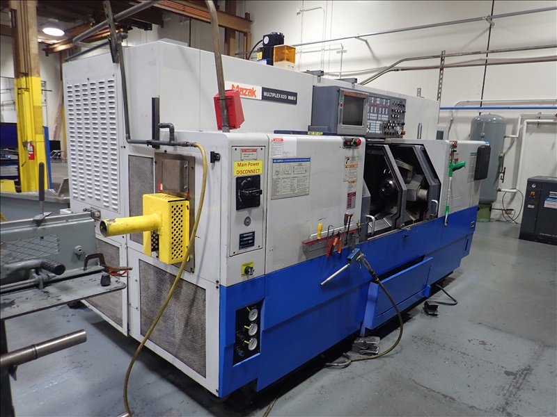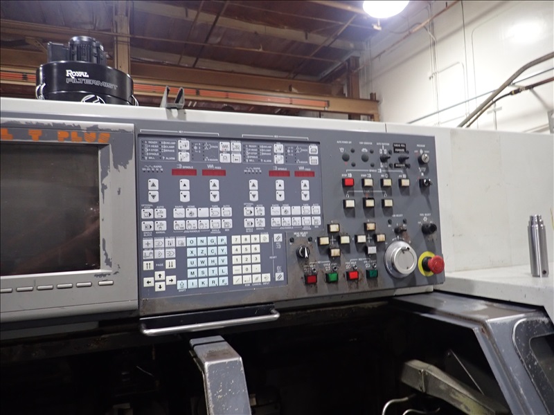 DUAL TURRET CNC LATHE, (2) 12-STATION TURRETS, (5) VERTICAL LIVE TOOL HOLDERS, (4) HORIZONTAL LIVE TOOL HOLDERS, TSUBAKIMOTO CHIP CONVEYOR, MAZATROL T PLUS CONTROLS, BAR FEEDER READY, ROYAL FX300 FILTERMIST, S/N: 120445