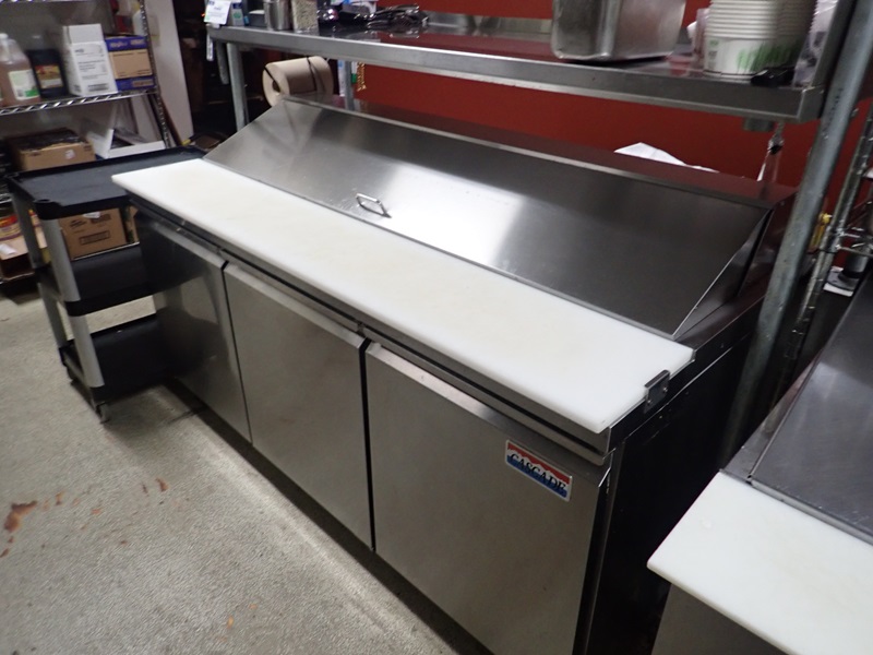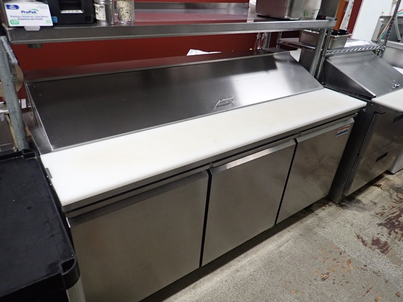 70" 3-door refrigerated prep station on casters