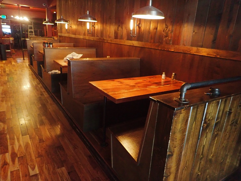 Group of custom built 4-station wood booth unit w/tables