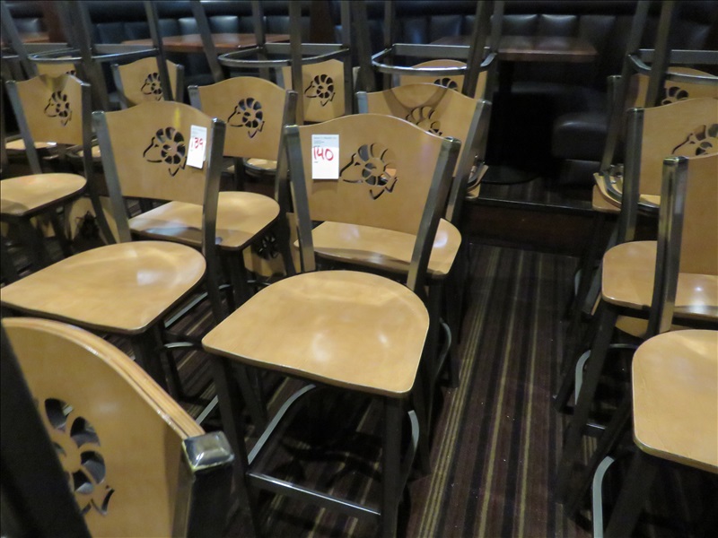 LOT, (4) WOOD BARSTOOLS W/"RAM" CUT OUT (SEATS ARE 29"H)