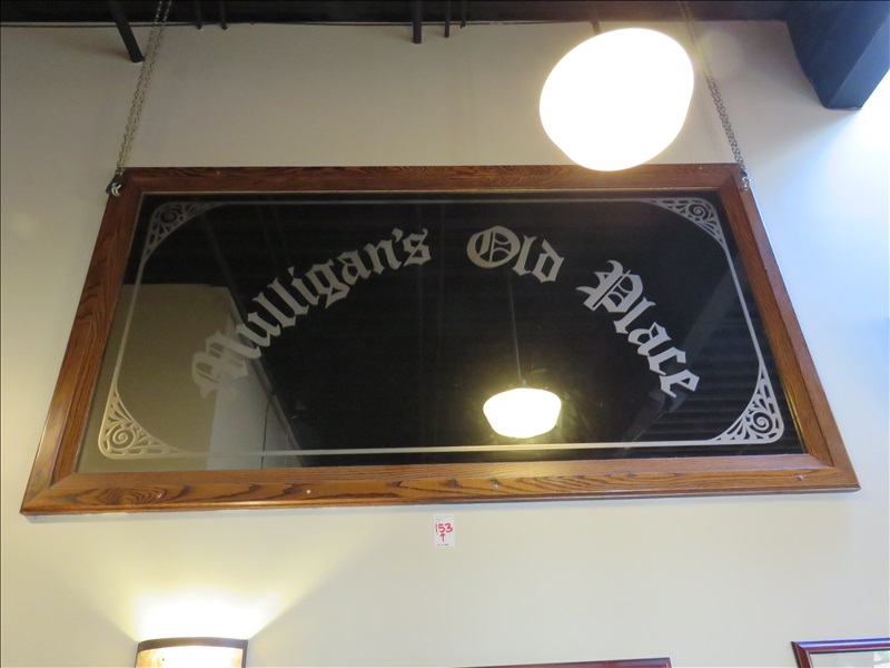 APPROX 9' X 6' "MULLIGAN'S OLD PLACE" FRAMED MIRROR