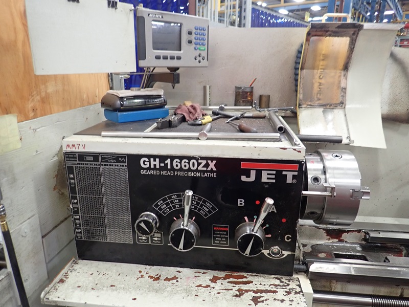 APPROX. 16"X60" GEARD HEAD PRECISION LATHE W/3-JAW CHUCK, 3" THRU SPINDLE, TOOL POST, STEADY REST, TAILSTOCK, ACU-RITE DIGITAL READOUT, S/N: 121008ZX2575