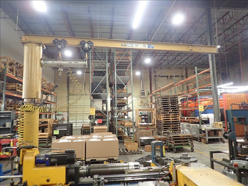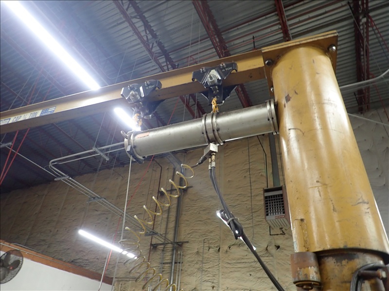 APPROX. 12' X 1/4 TON CAP., 360 DEGREE FLOOR MOUNTED JIB CRANE W/ PNEUMATIC HOIST