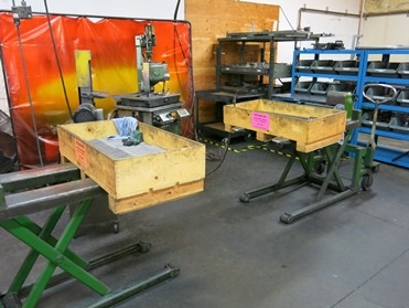 GROUP OF 6" BELT GRINDER, (2) SCISSOR LIFT CARTS, FIXTURE SHELVING, FANS, CARTS, HAND TOOLS & MISC.