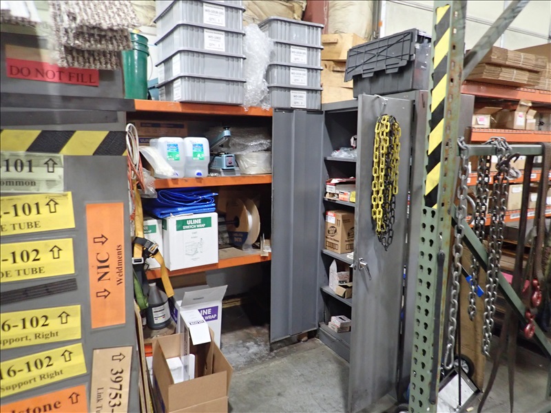 GROUP OF FINISHING TABLES, LOCKERS, SUPPLY CABINETS, CARTS, FANS & MISC. SUPPLIES