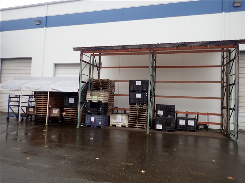 GROUP OF SHELTER, CARTS, SHELVING & BINS