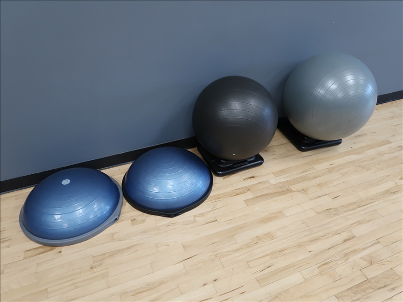 (2) BOSU BALLS & (2) RUBBER EXERCISE BALLS