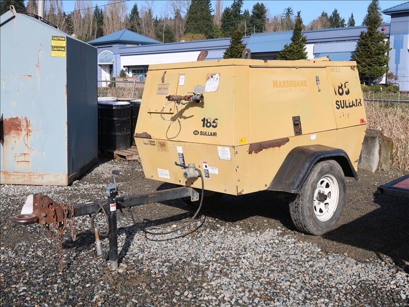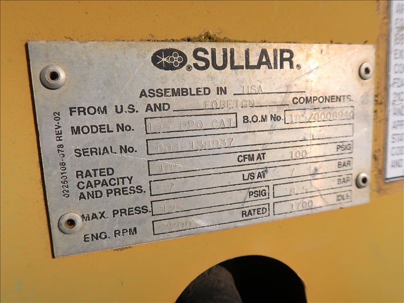 S/A 185 CFM TRAILER MOUNTED AIR COMPRESSOR, CAT 3054 4 CYL DIESEL (RUNS & OPERATES)