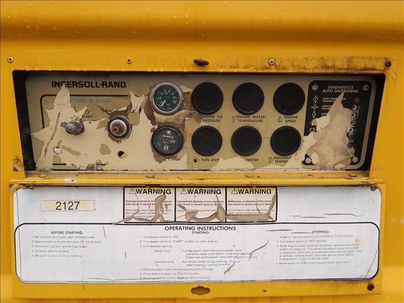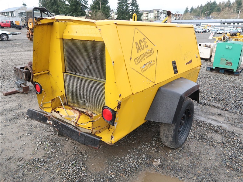S/A, 185 CFM, 100 PSI TRAILER MOUNTED AIR COMPRESSOR, JOHN DEERE 4039D, 4 CYL DIESEL