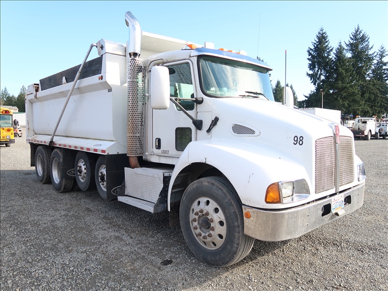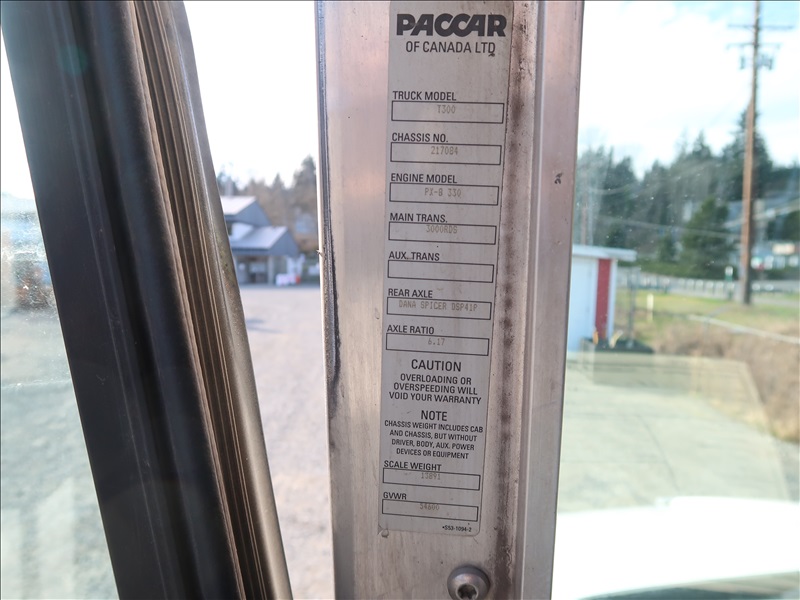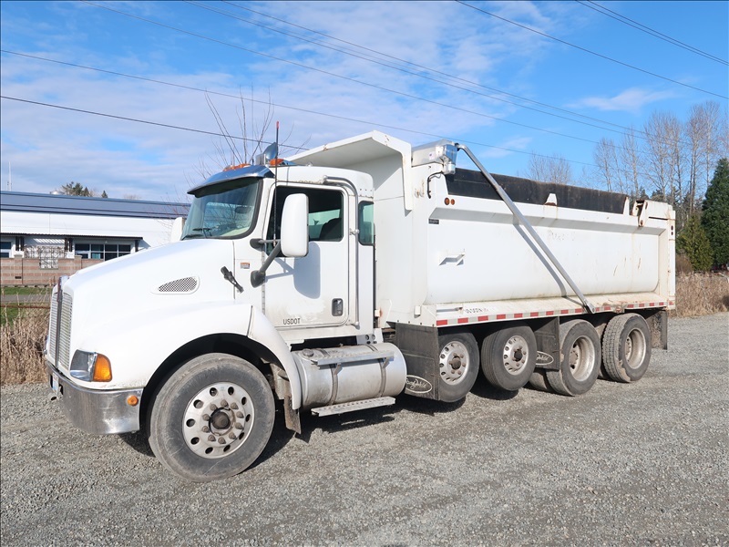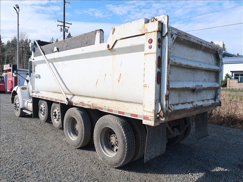 DUMP TRUCK, 16' STEEL BOX, HIGH LIFTGATE, TARP SYSTEM, 330 HP PACCAR PX-8, AUTO, CHALMERS SUSPENSION, 221" W/B, 14,600 LB FRONT, 40,000 LB REARS, 6.17 RATIO (2) DROP AXLES
