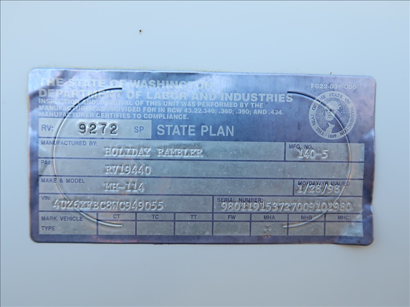 350 HP CUMMINS 5.9, AUTO, CLASS A DIESEL PUSHER 37' MOTORHOME, (1) SLIDE OUT, ONAN 6.5 KW DIESEL GEN, HYD LEVELING SYSTEM, WASHER/DRYER COMBO