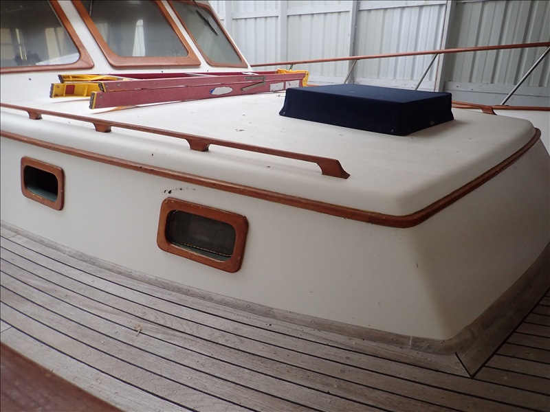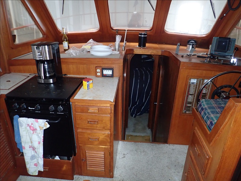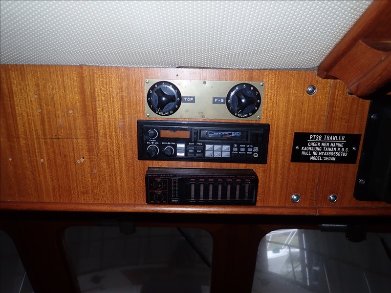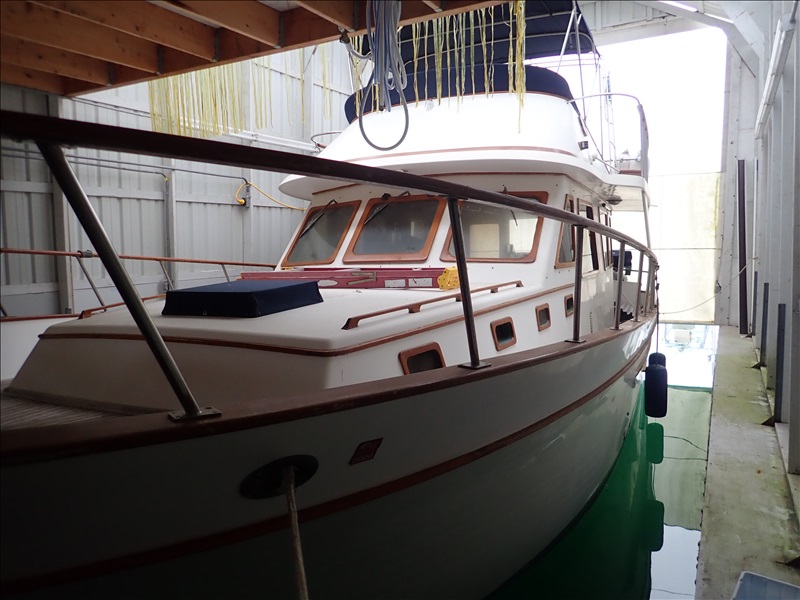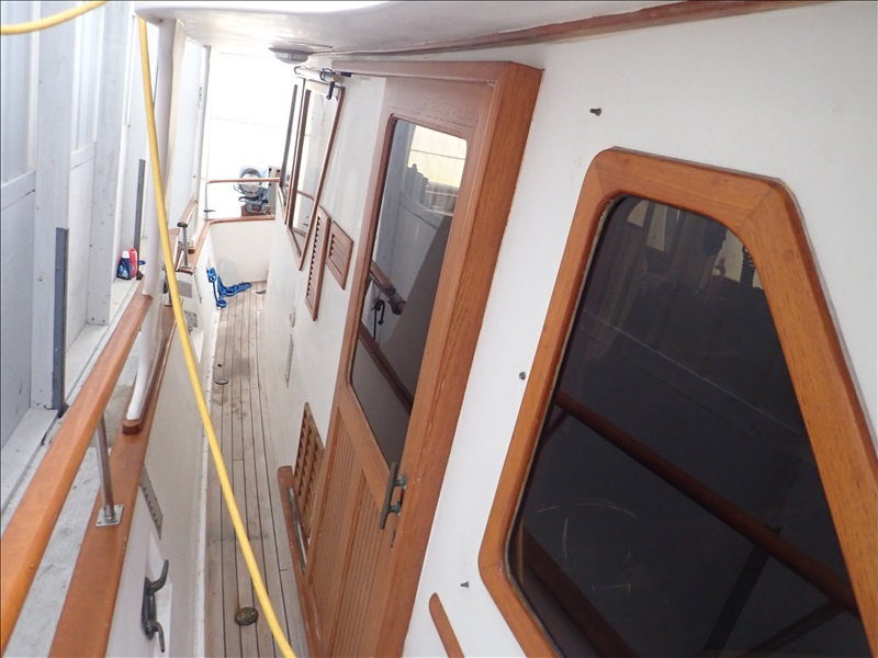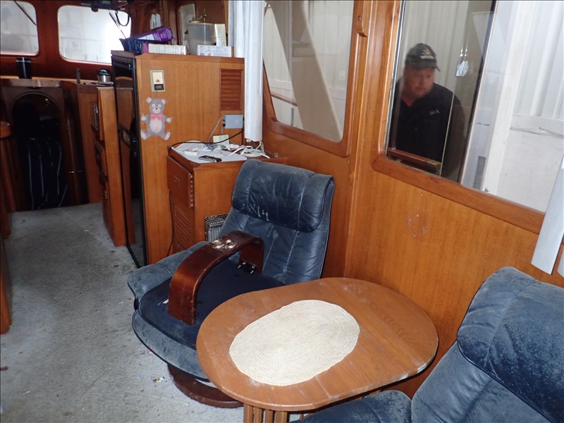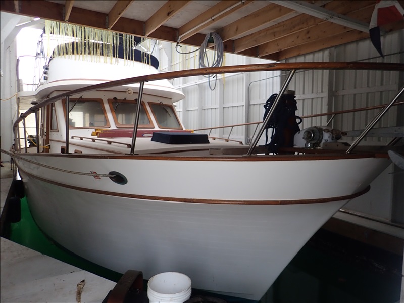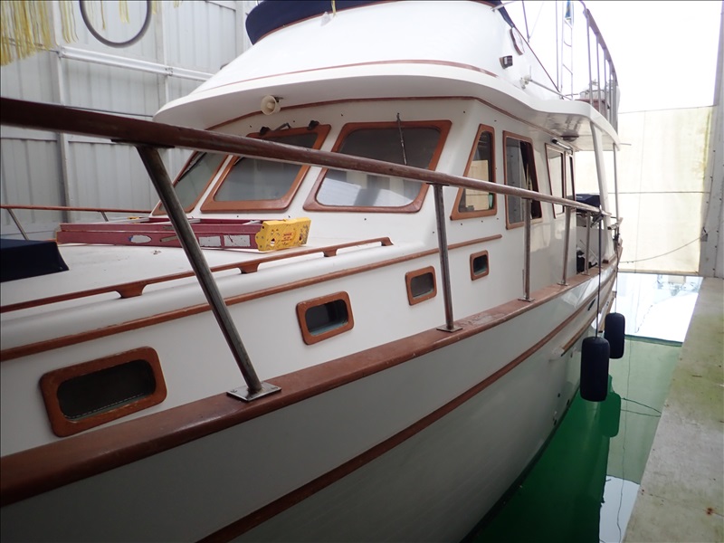 38' TRAWLER YACHT, FIBERGLASS HULL, PERKINS 6 CYL DIESEL, LUGGER 3 CYL MARINE GENERATOR, BOW THRUSTER, UPPER & LOWER HELM STATIONS, MAXWELL WIDNLESS WINCH W/PLOW ANCHOR ON CHAIN, TEAK DECK, STARBOARD BOARDING DOOR, TRANSOM DOOR, TEAK INTERIOR W/(2) CHAIRS