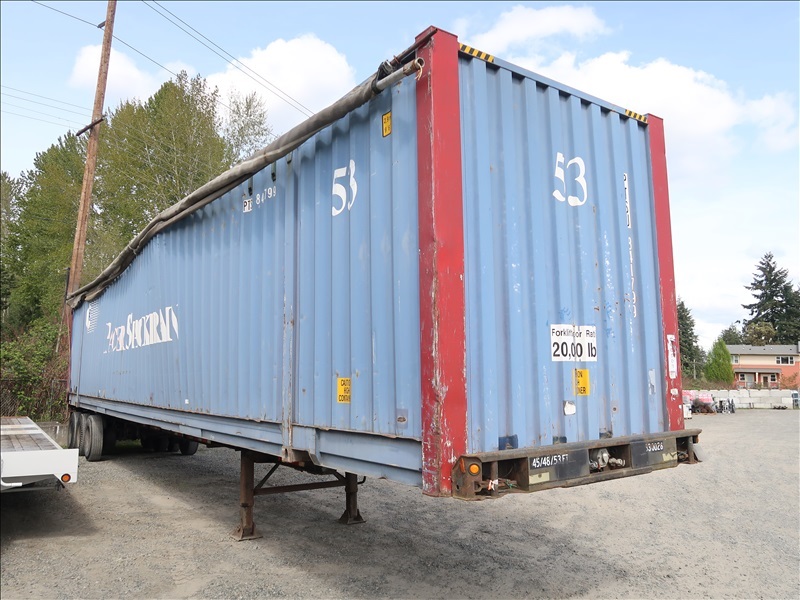 TRI/A, 45'/48'/53' EXTENDABLE CONTAINER CHASSIS, SPRING SUSPENSION, A/B W/53' OPEN TOP CONTAINER & REAR SWING DOORS