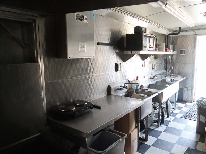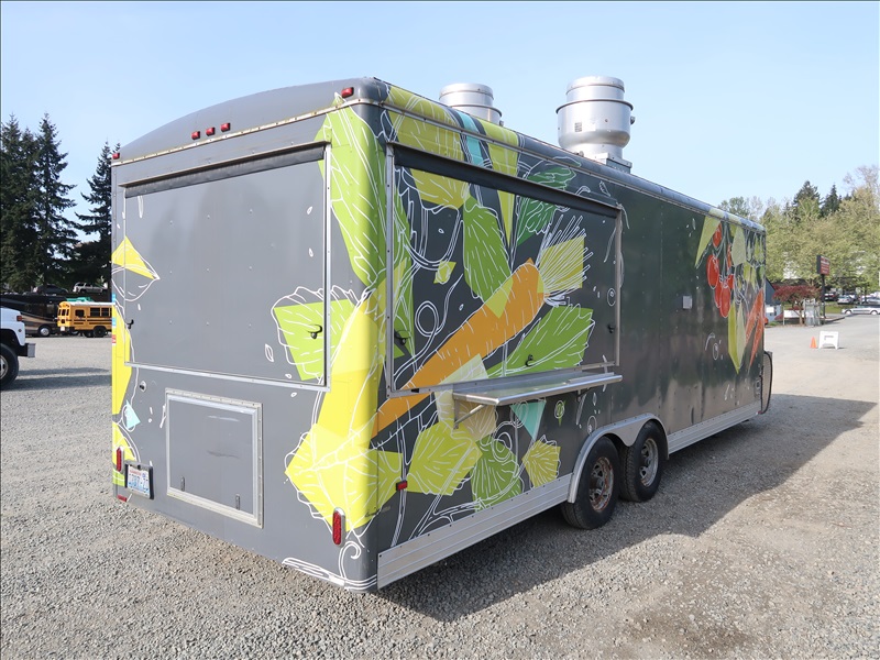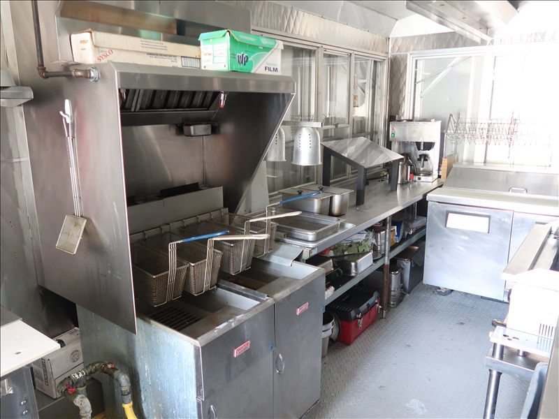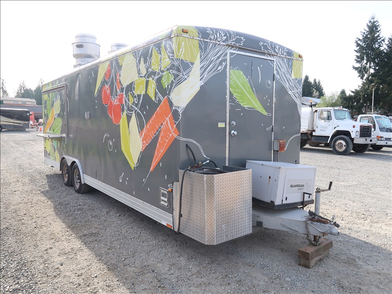 T/A 24' X 8' COMPLETE CONCESSIONS TRAILER, GRIDDLE/CHARBROILER/RANGE, 2-COMPARTMENT DEEP FRYER, 3-COMPARTMENT FOOD WARMER, REFRIGERATOR/FREEZER, REFRIGERATED PREP TABLE, 4-COMPARTMENT SINK, HAND WASH STATION, 4-GAL WATER HEATER, FIRE SUPPRESSION SYSTEM, 7,500 WATT LPG GENERATOR, STABILIZER JACKS, ELECT BRAKES, 225/75R15