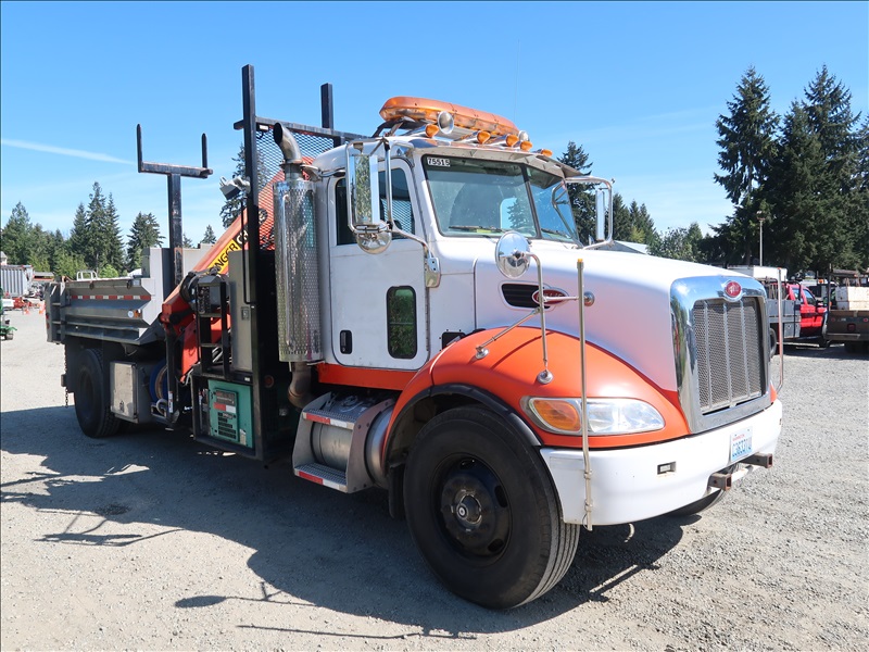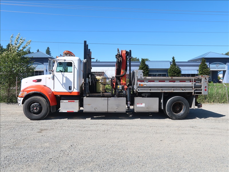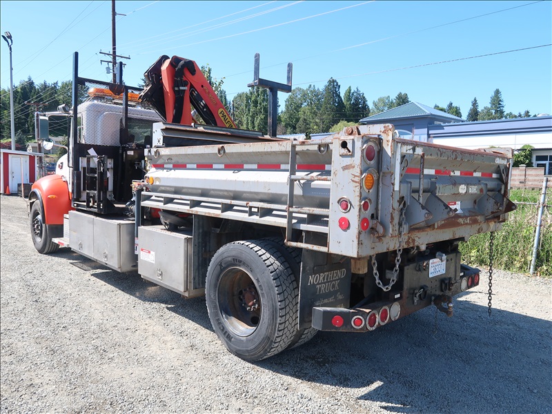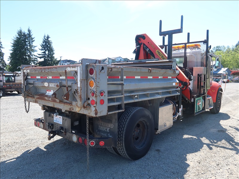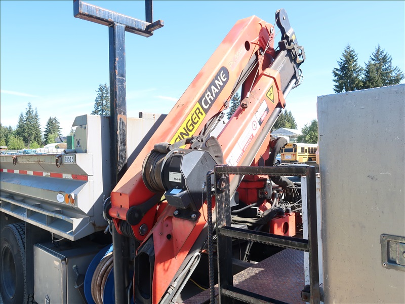 DUMP TRUCK, 10' STEEL BOX, CAT C7, AUTO, PALFINGER PK9501 KNUCKLE BOOM, W/HETRONIC REMOTE CONTROL, OUTRIGGERS, ONAN CMQD 5500 GENERATOR
