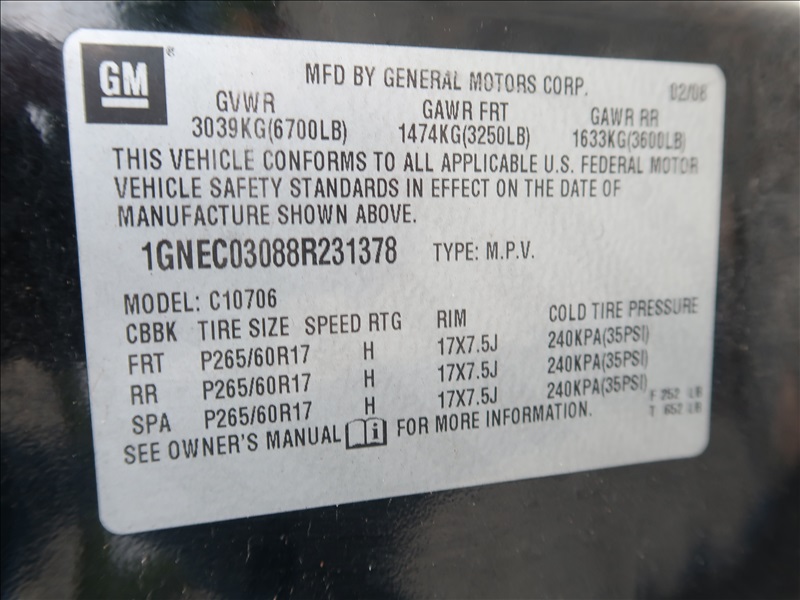2008 CHEV TAHOE SUV 2WD