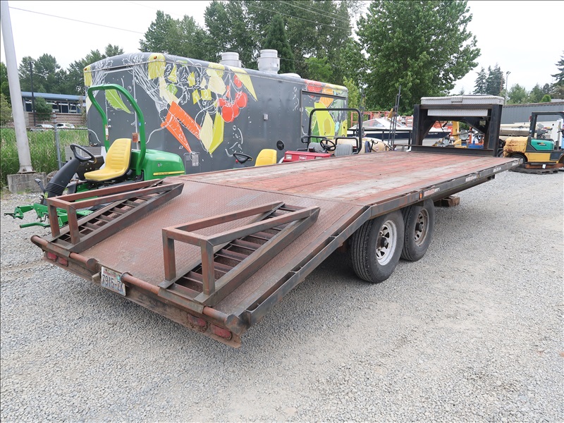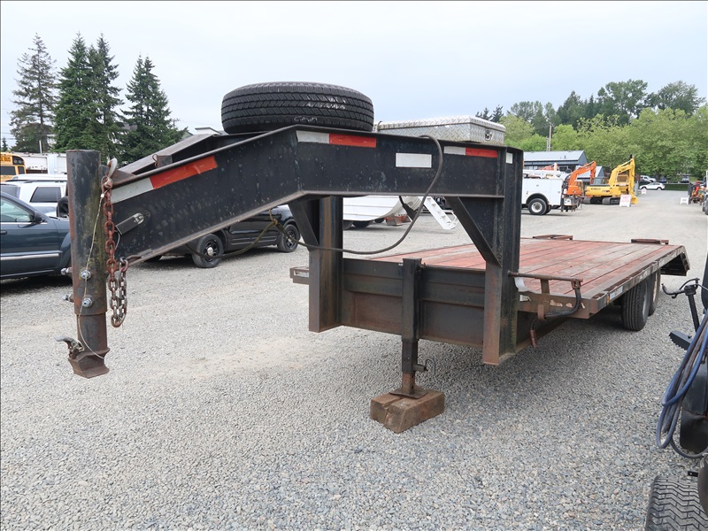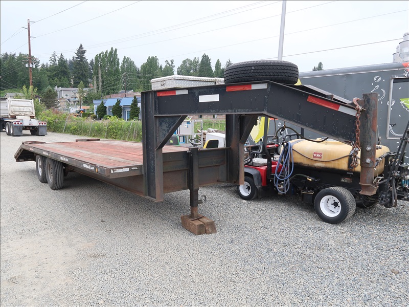 T/A 23' GOOSENECK EQUIPMENT TRAILER, 18' DECK + 5' BEAVERTAIL W/RAMPS, E/B, 235/85R16