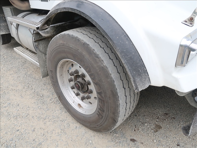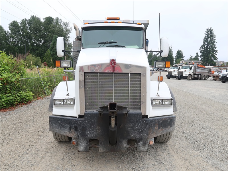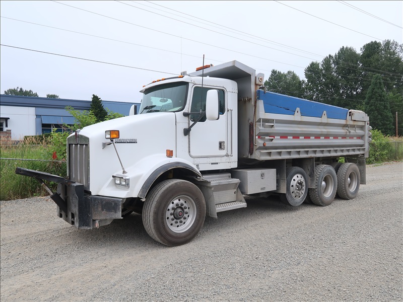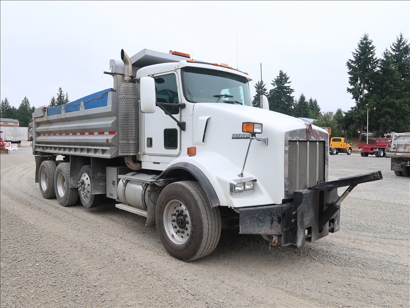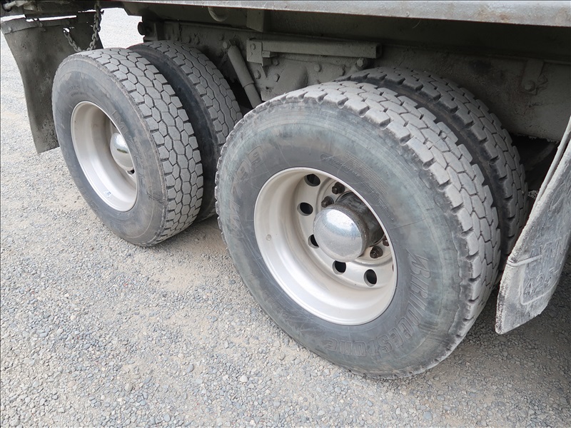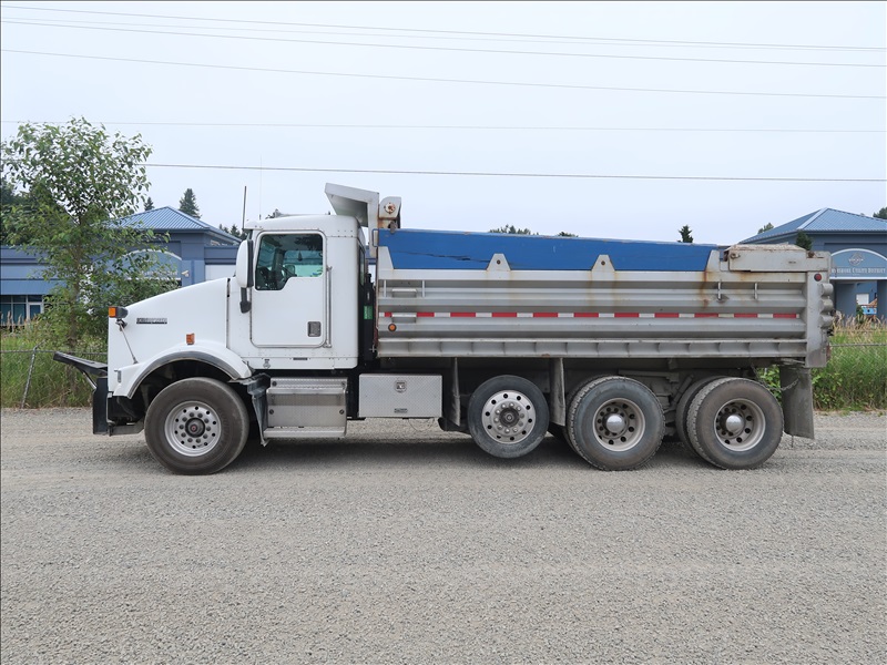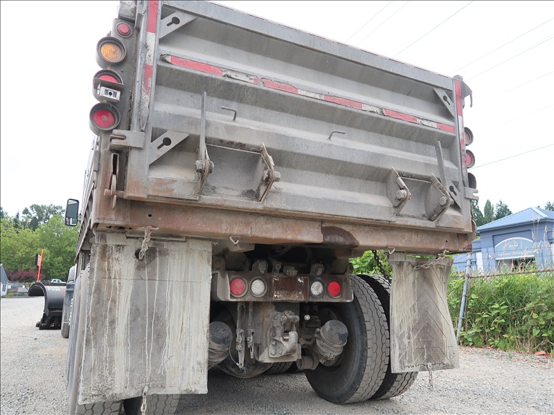 TRI/A DUMP TRUCK, 16' STEEL BOX, HIGH LIFTGATE, TARP SYSTEM, CHALMERS SUSPENSION, 211" W/B, 20,000 LB FRONT, 46,000 LB REARS, DROP AXLE, PLUMBED FOR PUP