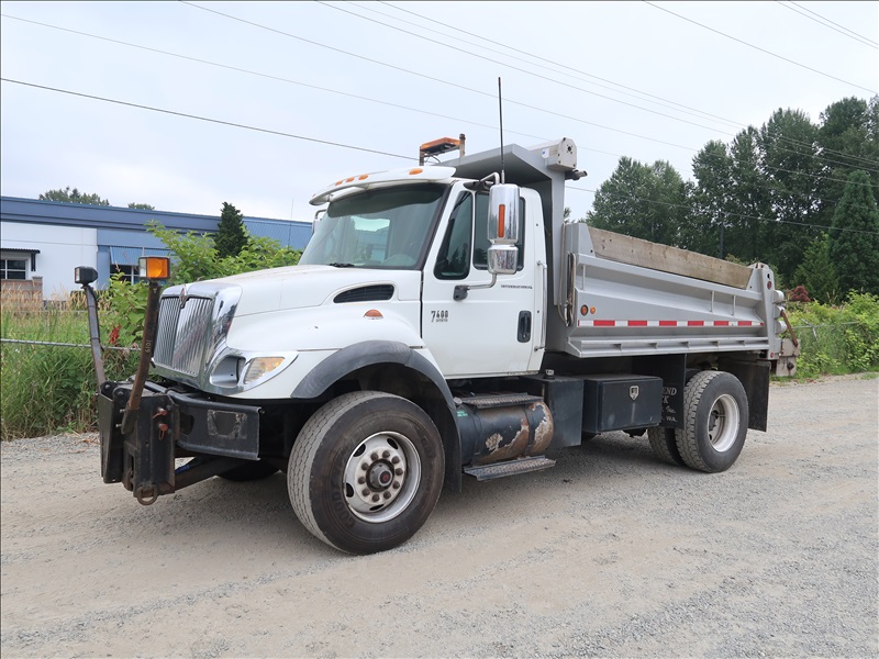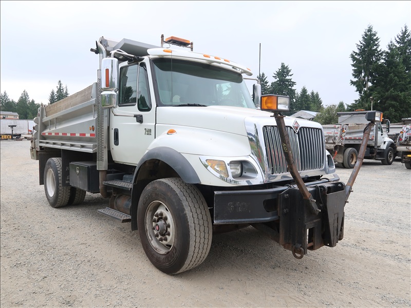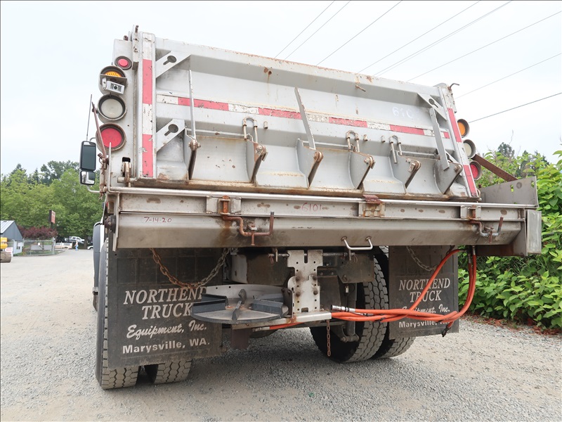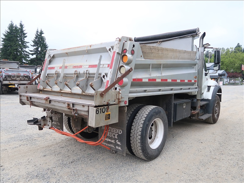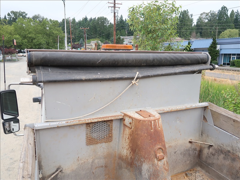 DUMP TRUCK, 11' STEEL BOX, TARP SYSTEM, SANDER, ASPHALT GATES, DT570, AUTO, AIR SUSPENSION, 163" W/B, 18,000 LB FRONT, 23,000 LB REARS, FRONT PLOW READY (CONSIGNOR DISCLOSURE: COOLANT IN OIL)