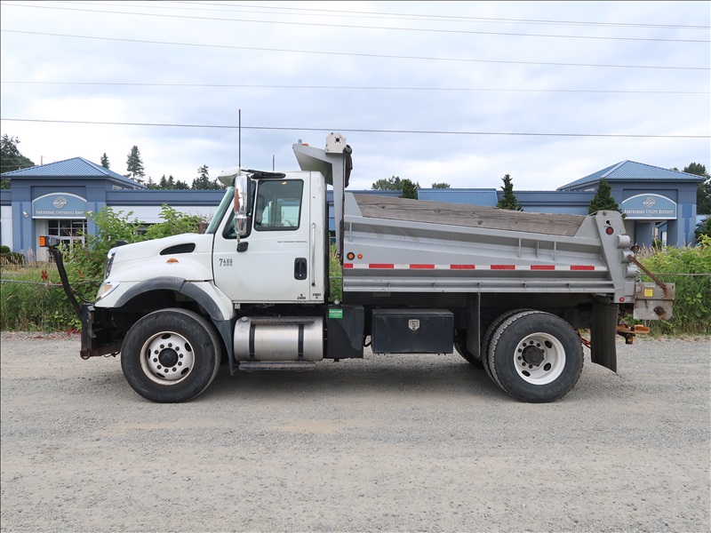 DUMP TRUCK, 11' STEEL BOX, TARP SYSTEM, SANDER, ASPHALT GATES, DT570, AUTO, 163" W/B, 18,000 LB FRONT, 23,000 LB REARS, FRONT PLOW READY