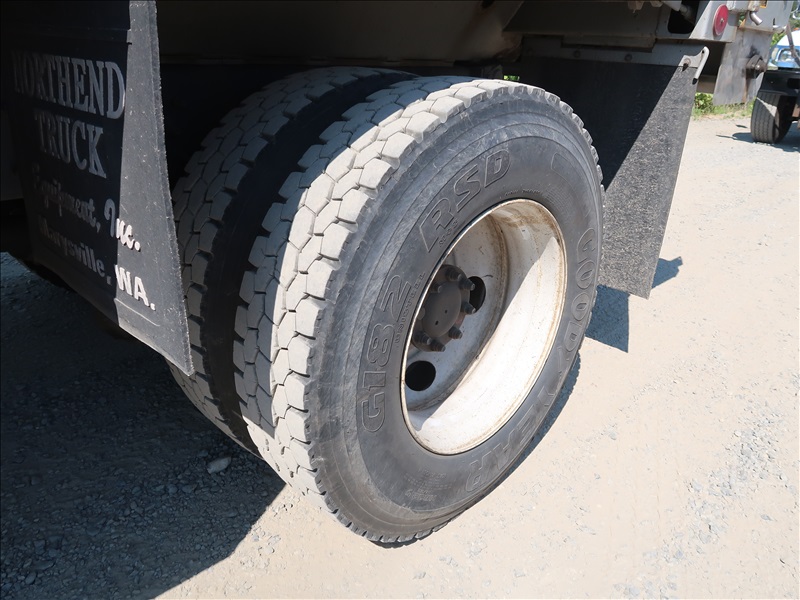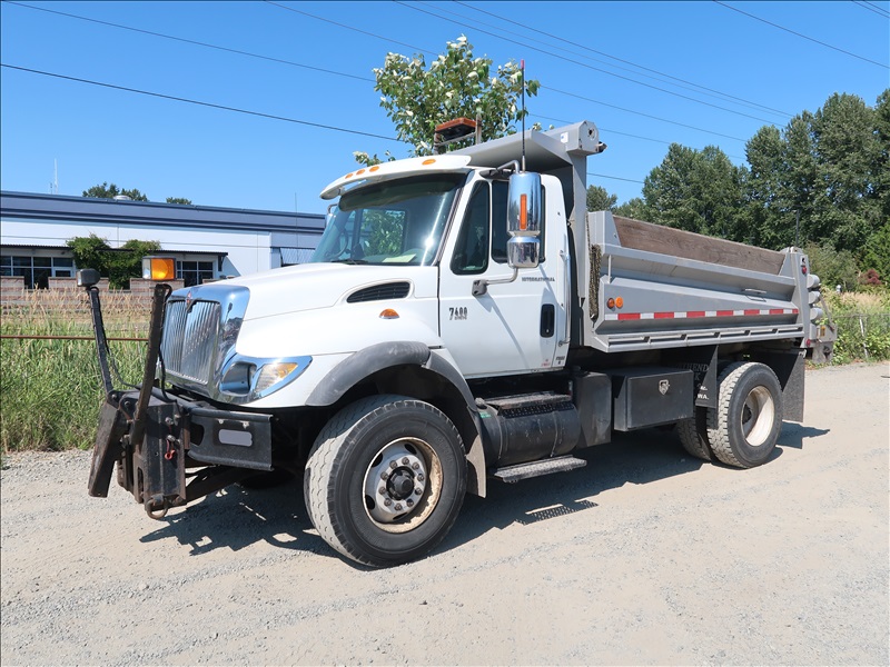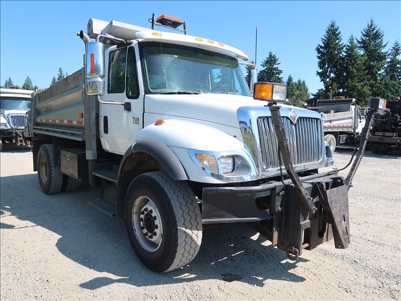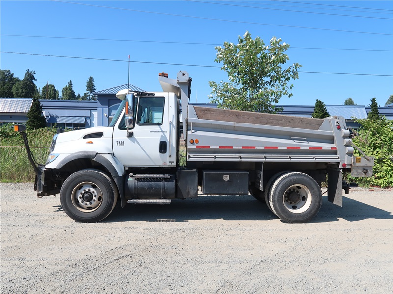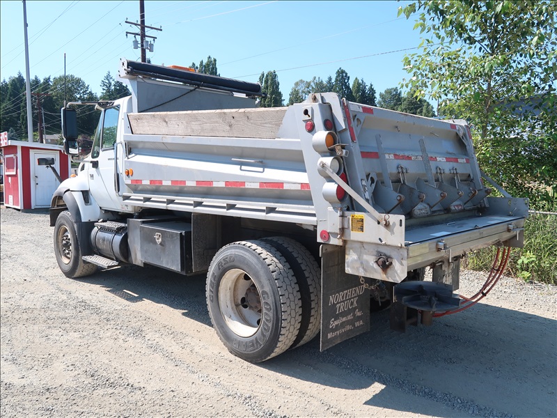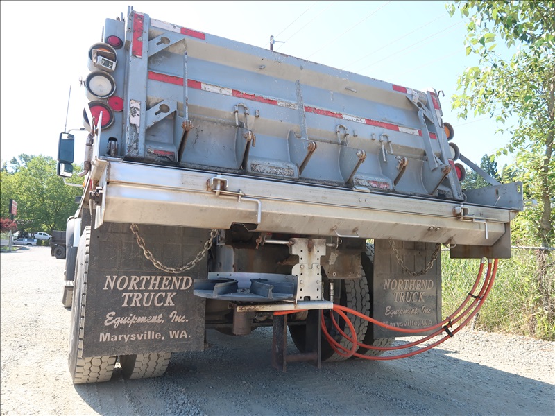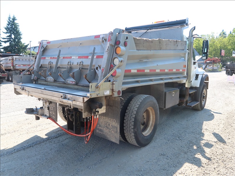DUMP TRUCK, 11' STEEL BOX, TARP SYSTEM, SANDER, ASPHALT GATES, DT570, AUTO, AIR SUSPENSION, 163" W/B, 18,000 LB FRONT, 23,000 LB REARS, FRONT PLOW READY