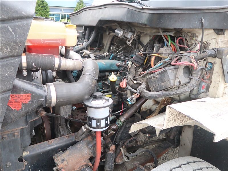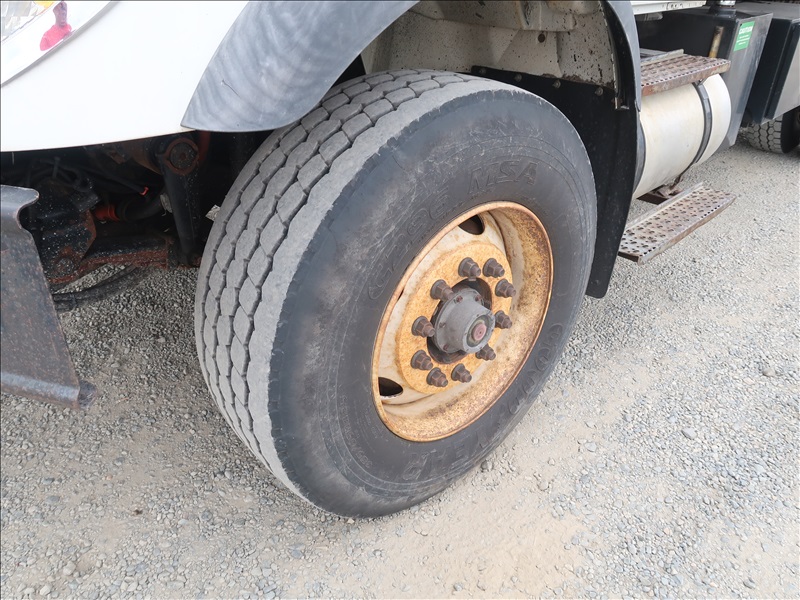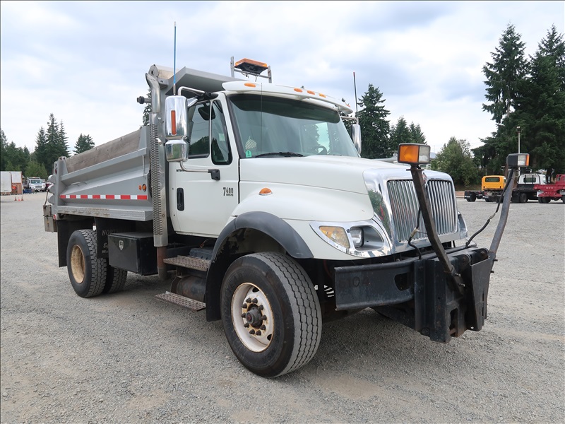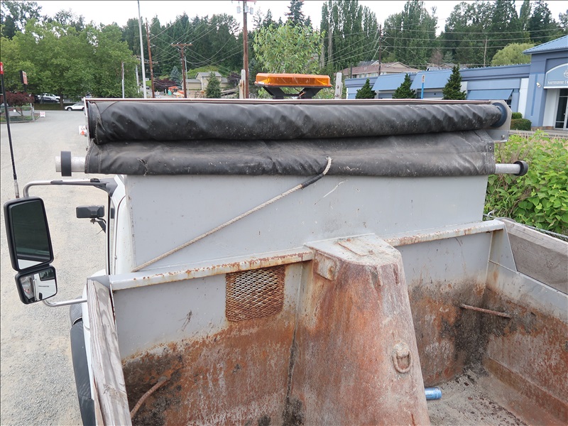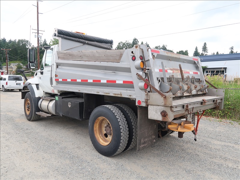 DUMP TRUCK, 11' STEEL BOX, TARP SYSTEM, SANDER, ASPHALT GATES, DT570, AUTO, AIR SUSPENSION, 163" W/B, 18,000 LB FRONT, 23,000 LB REARS, FRONT PLOW READY