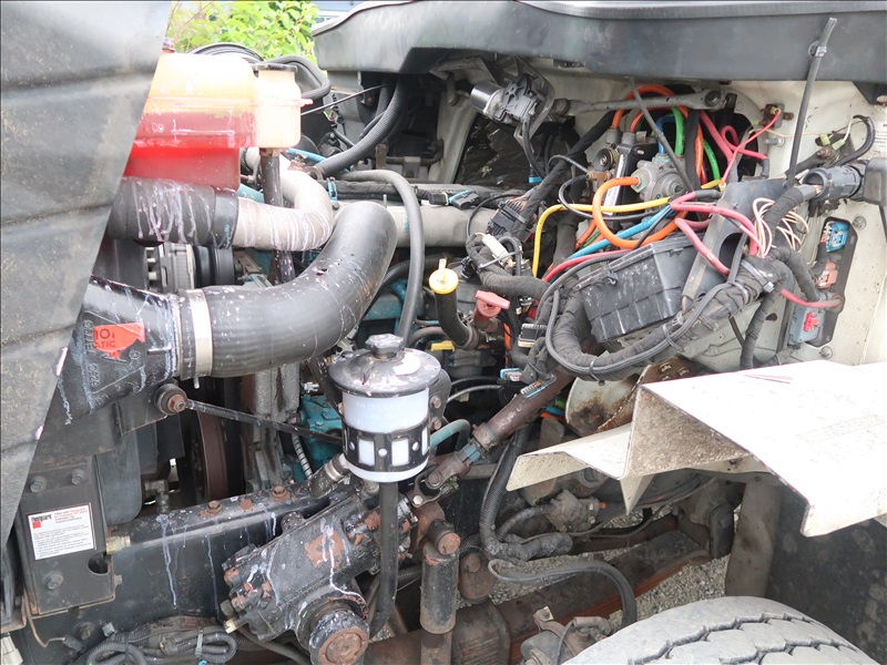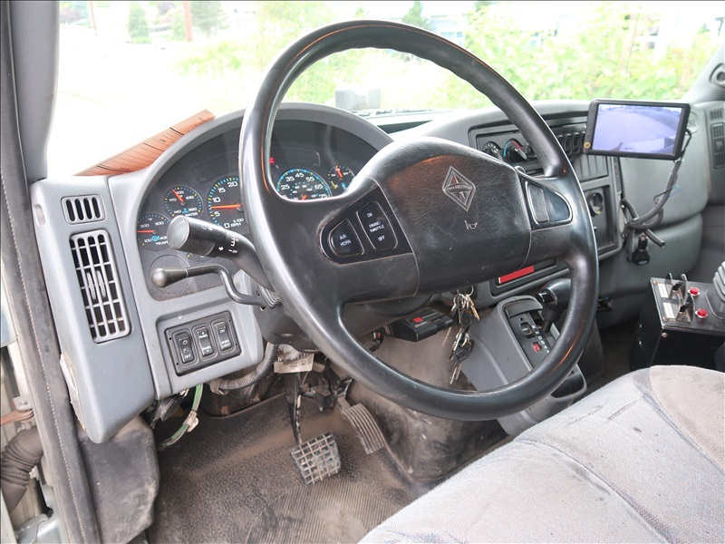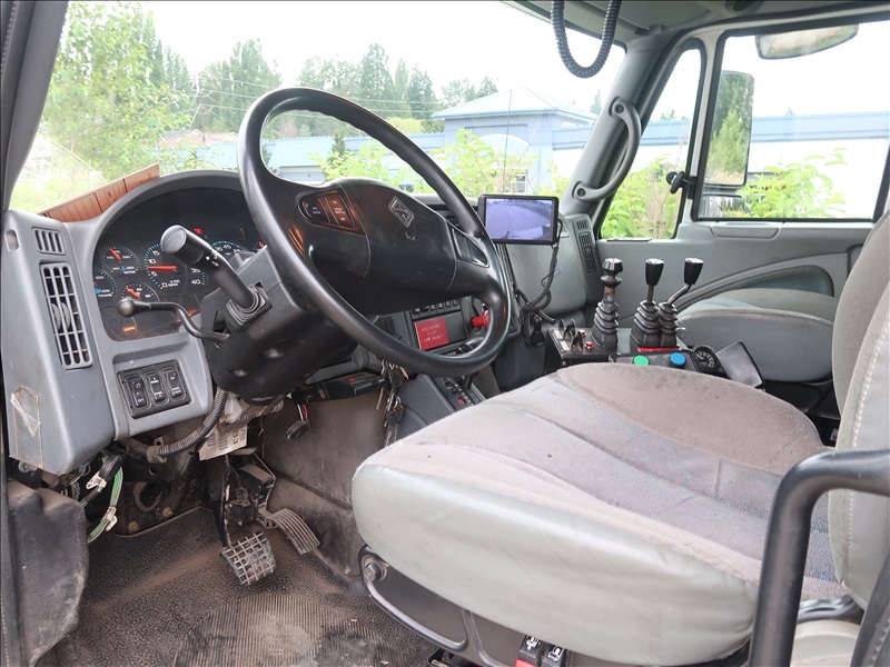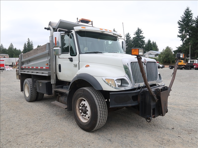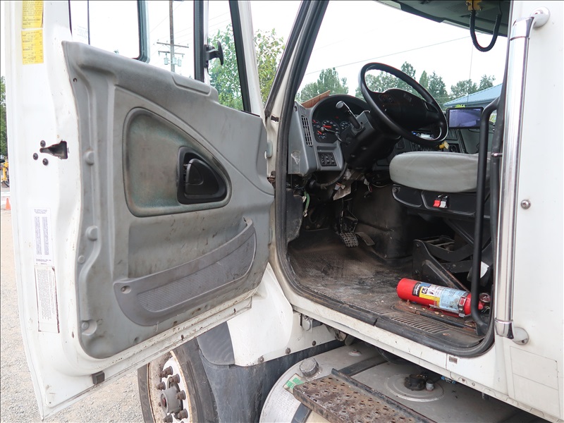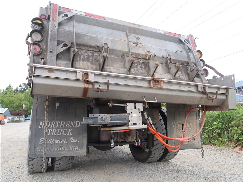 DUMP TRUCK, 11' STEEL BOX, TARP SYSTEM, SANDER, ASPHALT GATES, DT570, AUTO, AIR SUSPENSION, 163" W/B, 18,000 LB FRONT, 23,000 LB REARS, FRONT PLOW READY
