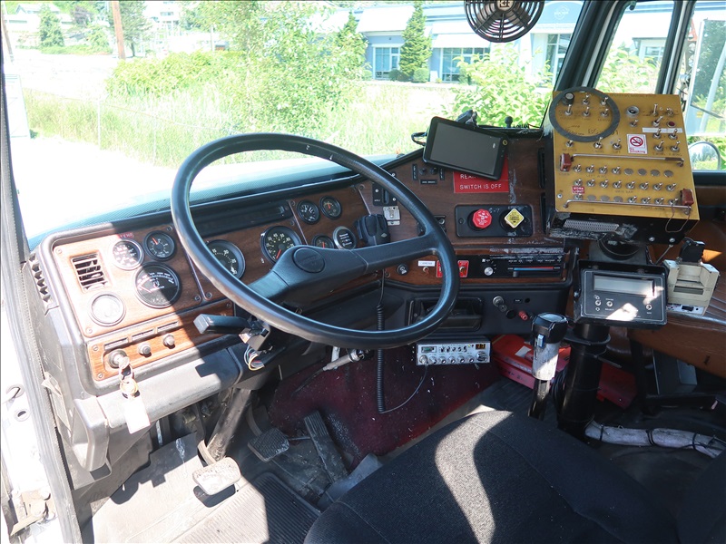 T/A ASPHALT DISTRIBUTOR TRUCK, BEAR CAT 4,000 GAL TANK W/CAB CONTROLS, FOLDING SPRAY BAR, CAT 3406, 8LL SPD, 12,000 LB FRONT, 36,000 LB REARS