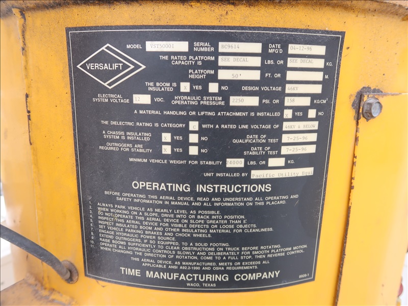 BUCKET TRUCK, VERSALIFT VST5000I 50', DT466, AUTO (BAD ENGINE)