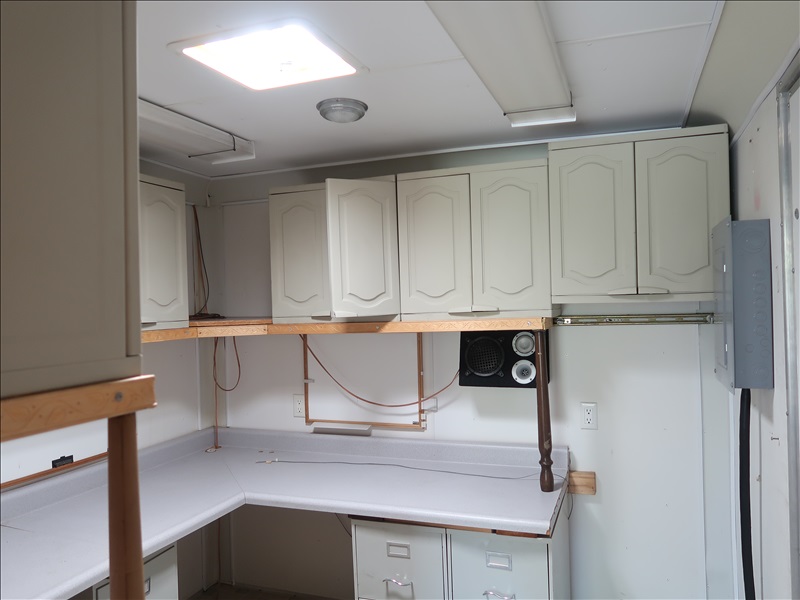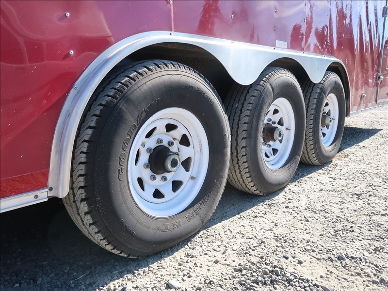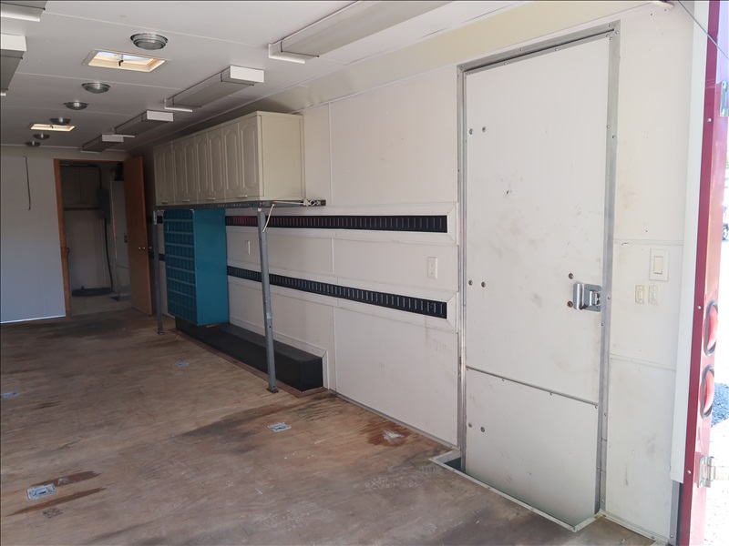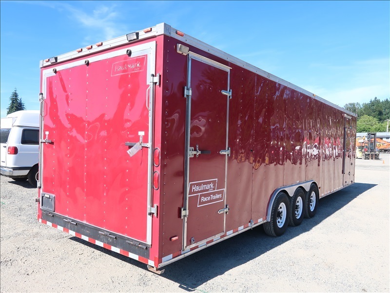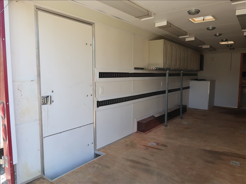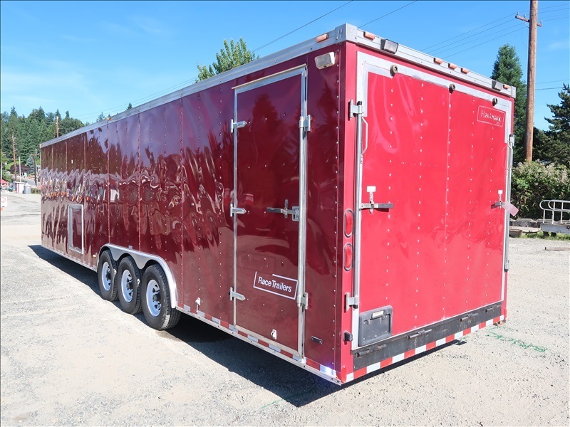 TRI/A 32' 18,000 GVWR ENCLOSED CAR TRAILER, 24' VEHICLE STORAGE, 8' OFFICE SPACE UP FRONT, 3 SIDE DOORS, 6'9" REAR RAMP DOOR, GENERATOR COMPARTMENT (NO GENERATOR), E/B, 235/85R16