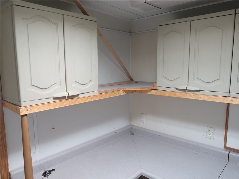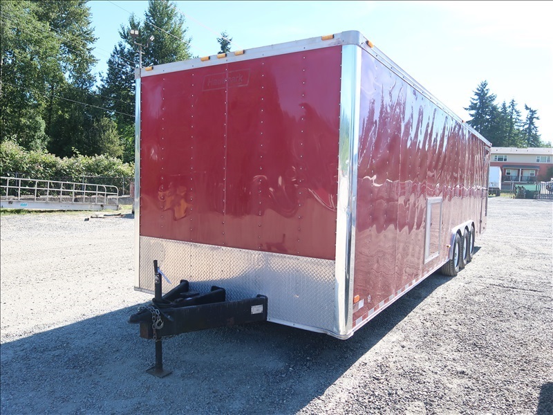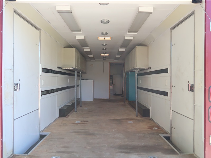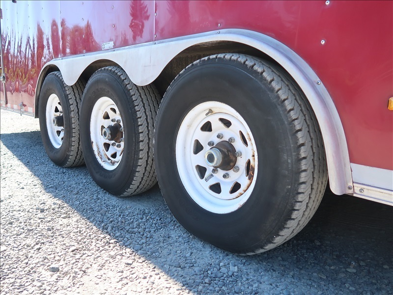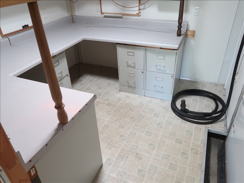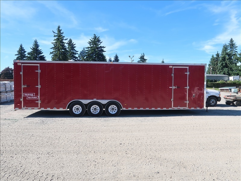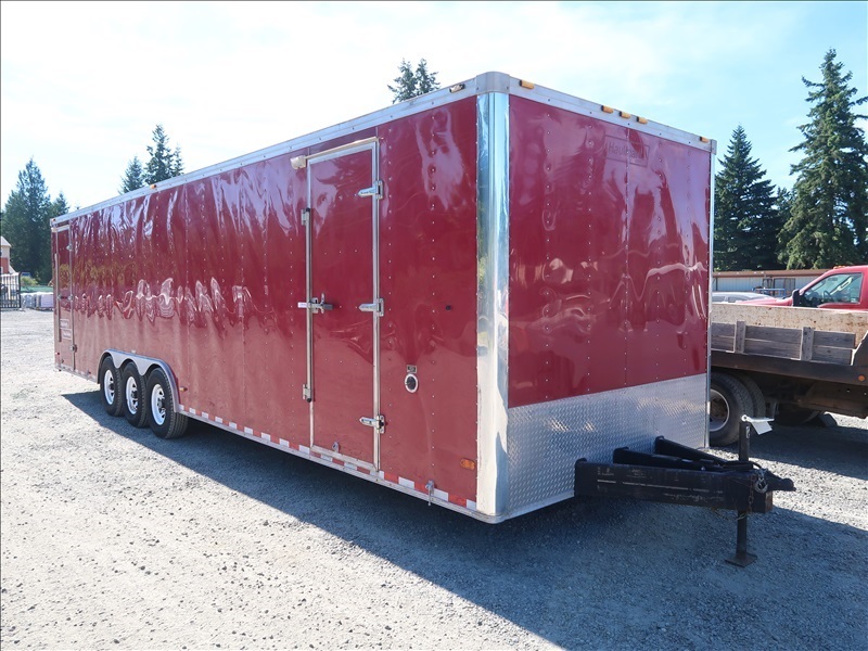 TRI/A 32' 18,000 GVWR ENCLOSED CAR TRAILER, 24' VEHICLE STORAGE, 8' OFFICE SPACE UP FRONT, 3 SIDE DOORS, 6'9" REAR RAMP DOOR, GENERATOR COMPARTMENT (NO GENERATOR), E/B, 235/85R16