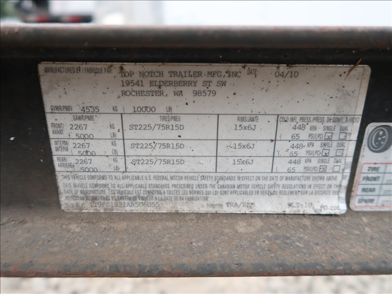 T/A 18' 10,000 LB GVWR FLATBED BEAVERTAIL TILTBED TRAILER, E/B, 225/75R15