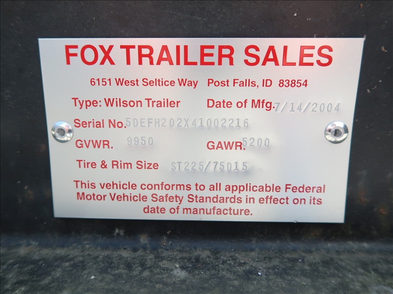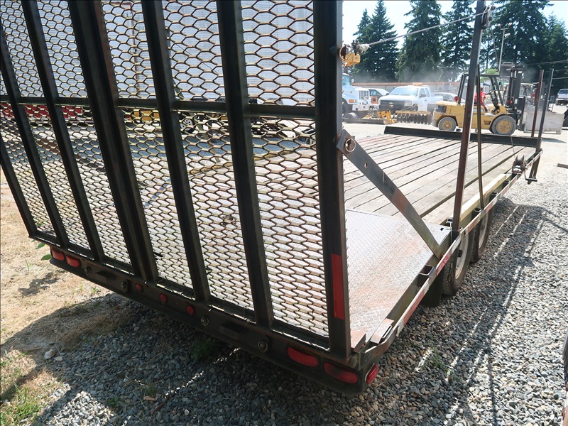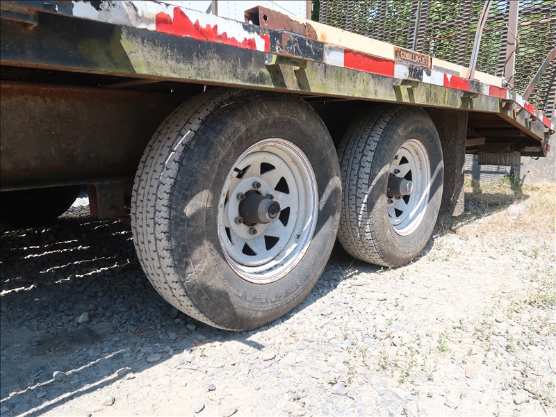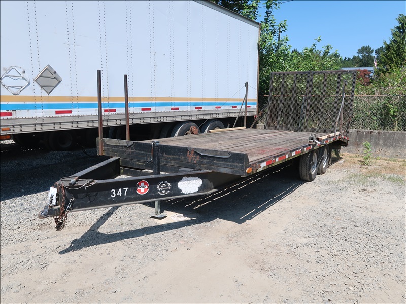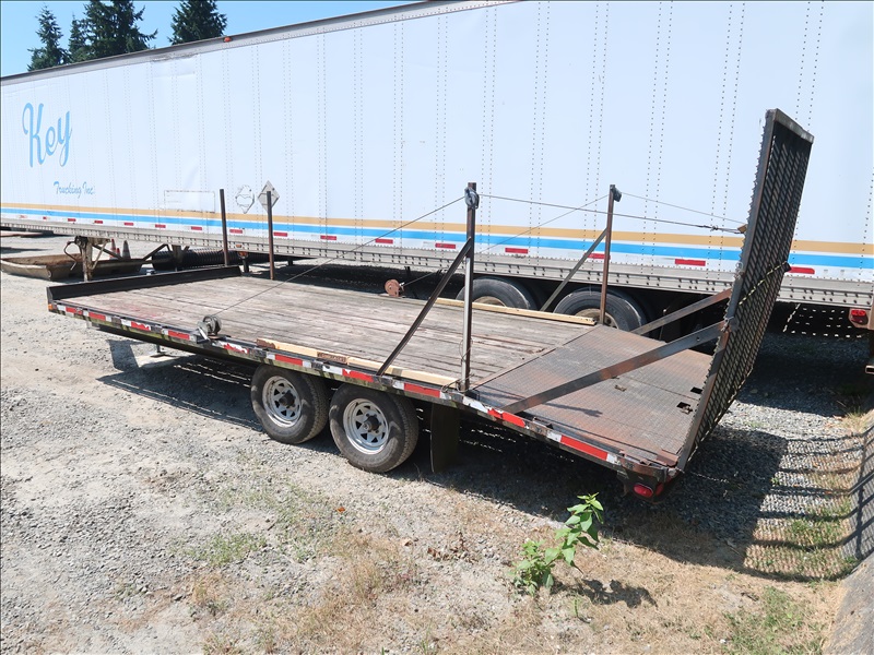 T/A 20' 9,950 LB GVWR BEAVERTAIL EQUIPMENT TRAILER, DROP DOWN REAR RAMPS, E/B, 225/75R15