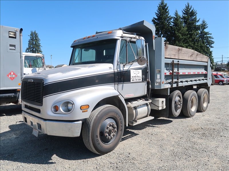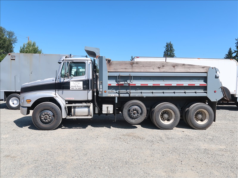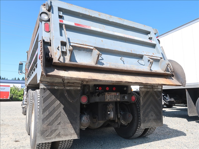 TRI/A DUMP TRUCK, 16' STEEL BOX, ASPHALT GATES, 370 HP CUMMINS M11, AUTO, 205" W/B, 18,000 LB FRONT, 40,000 LB REARS, DROP AXLE, PLUMBED FOR PUP