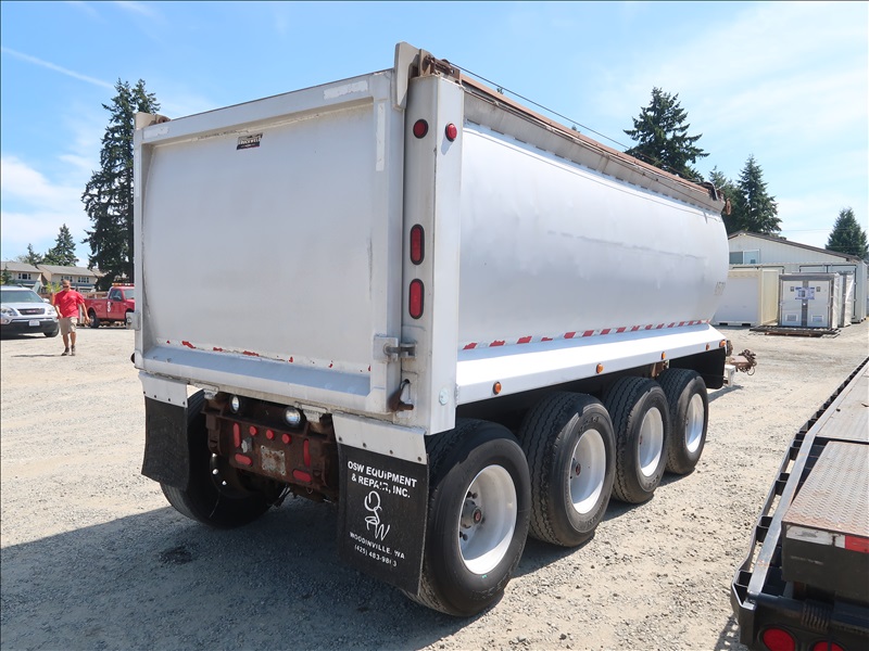 QUAD/A 53,000 LB GVWR, 17' ALUMINUM BOX PUP TRAILER, SPRING SUSPENSION, REAR STEER AXLE, A/B, LOAD TARPING SYSTEM, 385/65R22.5