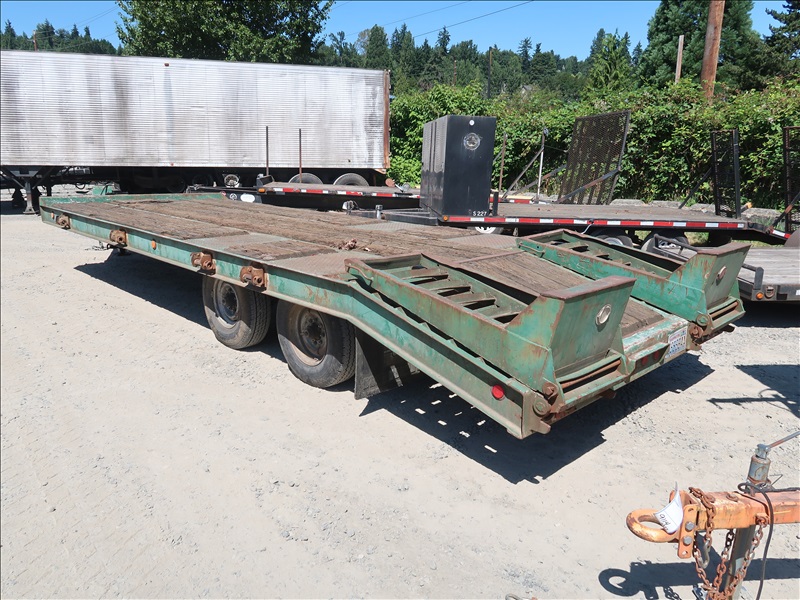 T/A, 23' 17,800 LB GVWR BEAVERTAIL EQUIPMENT TRAILER, 19' DECK + 4' BEAVERTAIL, FOLD DOWN RAMP, SPRING SUSPENSION, E/B, 235/85R16