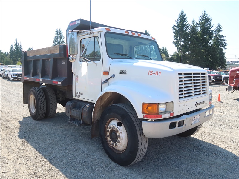 DUMP TRUCK, 10' STEEL BOX, ASPHALT GATE, DT466E, 6 SPD, 152" W/B