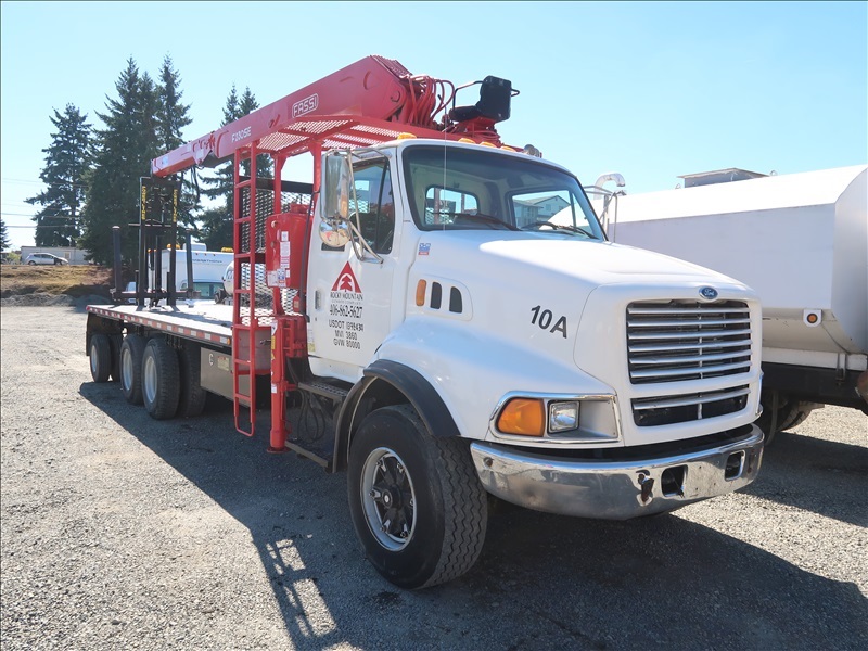 T/A CRANE TRUCK, FASSI F230SE, MATERIAL LOADER, PALLET FORKS, HYD OUTRIGGERS, 405 HP CAT C12, 8LL SPD, SPRING BEAM SUSPENSION, TAG/A