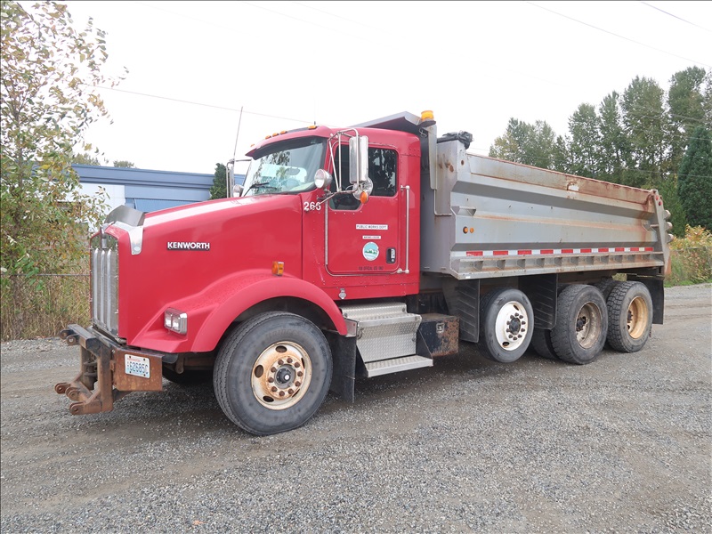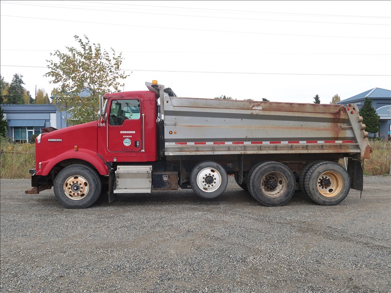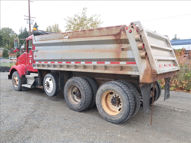 TRI/A DUMP TRUCK, 16' STEEL BOX, TARP SYSTEM, 435 HP CAT C15, 18 SPD, HAULMAXX SUSPENSION, 215" W/B, 14,600 LB FRONT, 46,000 LB REARS, 4.30 RATIO, PLUMBED FOR PUP, DBL REAR LOCKERS, DBL FRAME