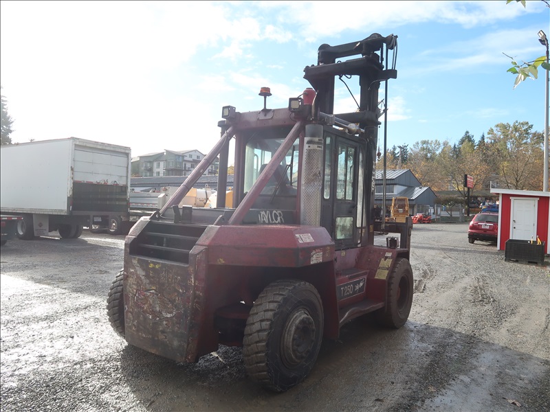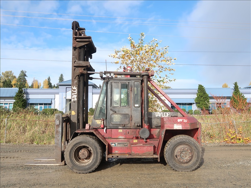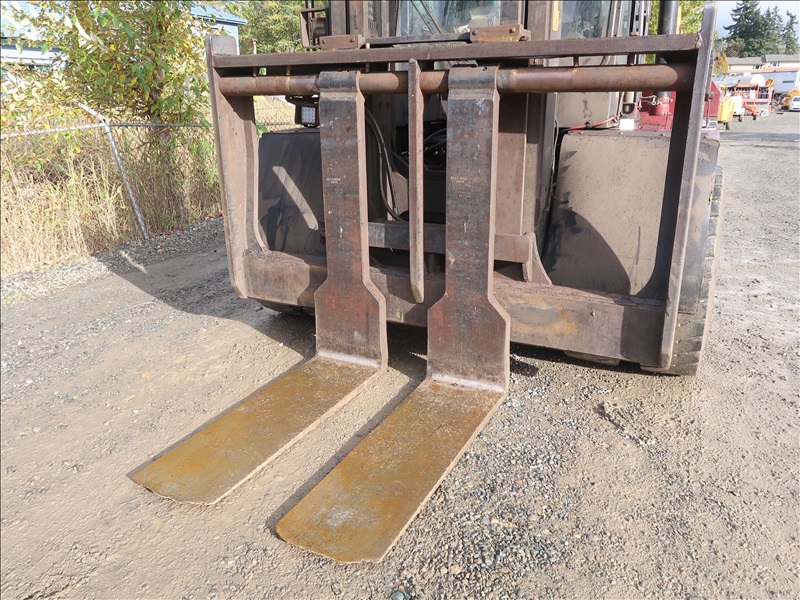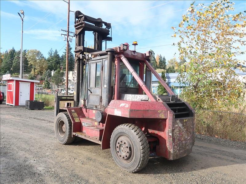 22,200 LB DUAL PNEUMATIC TIRE FORKLIFT, 216" FORK HEIGHT, 2-STAGE MAST, SIDE SHIFT, LUMBER FORKS, CUMMINS 6 CYL DIESEL, FIRE SUPPRESSION SYSTEM, CAB