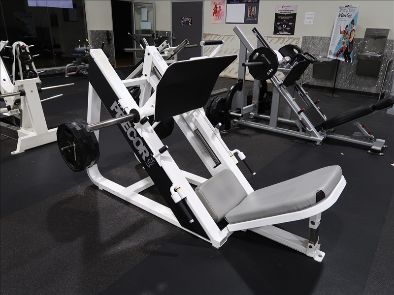 ANGLED LEG PRESS MACHINE W/(9) 45LB PLATED WEIGHTS