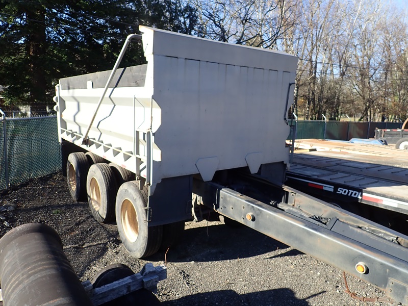 TRI/A END DUMP PUP TRAILER, EXTENDABLE REACH, SPRING SUPSENSION, 15' STEEL BOX, AUTO TARP
