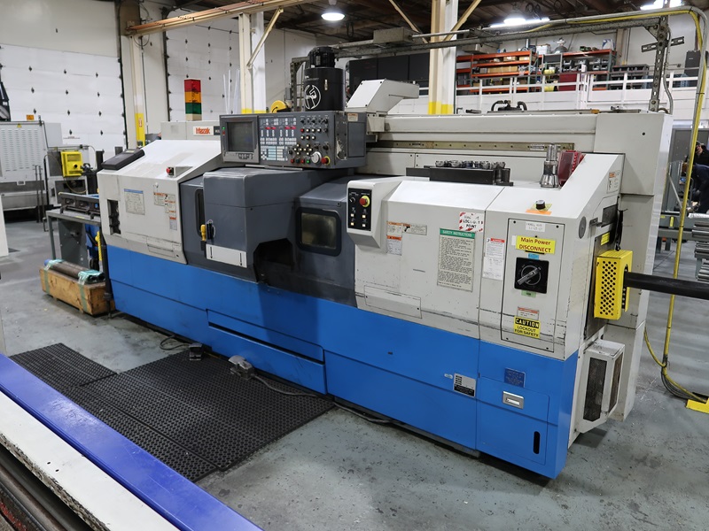 CNC TURNING CENTER, (2) TURRETS W/12-STATIONS, LIVE TOOLING, 3"OD MAX CAPACITY, MAZATROL ELECTRONIC CONTROLS, (2) FOOT CONTROLS, ROYAL FILTERMIST FX900 FILTER, MAYFRAN 38" CHIP CONVEYOR