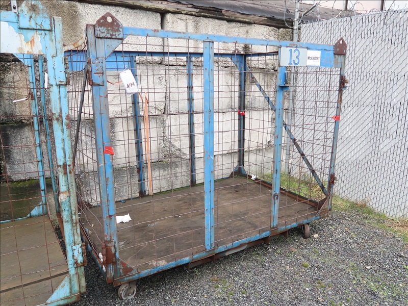 93"L X 5'W METAL CAGE ON CASTERS W/FORK POCKETS