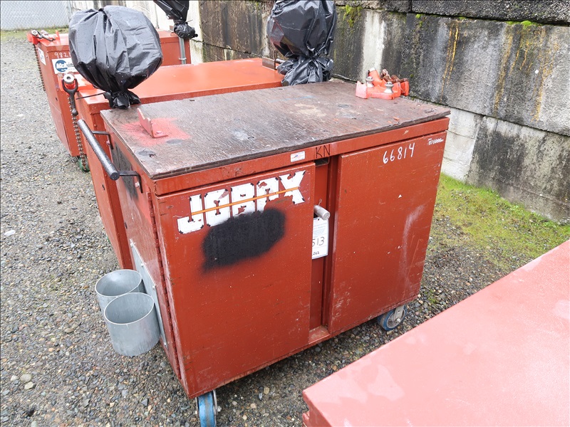 44"L X 27"W JOBSITE STORAGE CABINET ON CASTERS W/RIDGID BC-410 PIPE VISE, 1/8" - 4" CAP