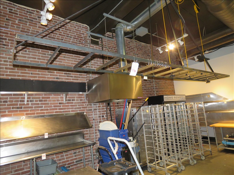 17' X 30" CEILING MOUNTED PAN RACK (CEILING IS APPROX 16'H BUYER IS RESPONSIBLE FOR BRINGING LADDER, TOOLS & REMOVING)