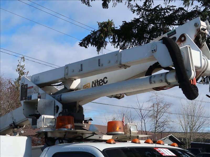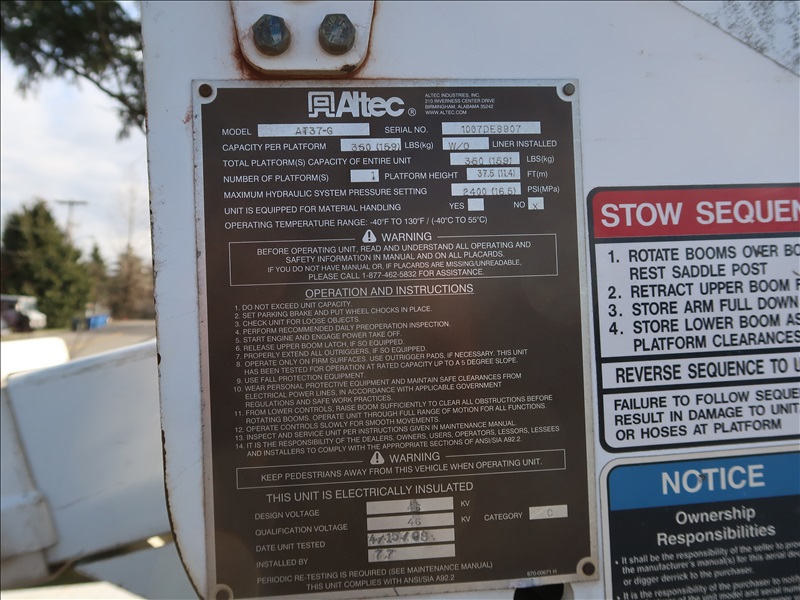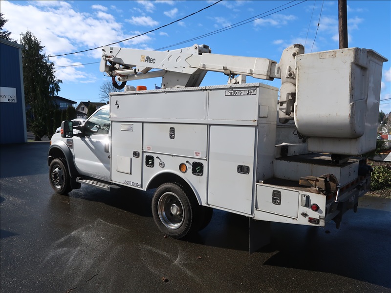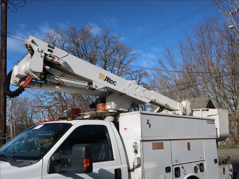 BUCKET TRUCK, V8, POWER STROKE DIESEL, AUTO, ALTEC AT37-G HYDRAULIC, 350 LB CAP, 37' BUCKET, REMOTE PENDANT, 10-DOOR S/B, DUAL TANK, 2-REMOTE CONTROL SPOT LIGHTS, SIGNAL MASTER, HITCH CAM, DIMENSIONS PURE SIN INVERTER, PTO, 5" VISE